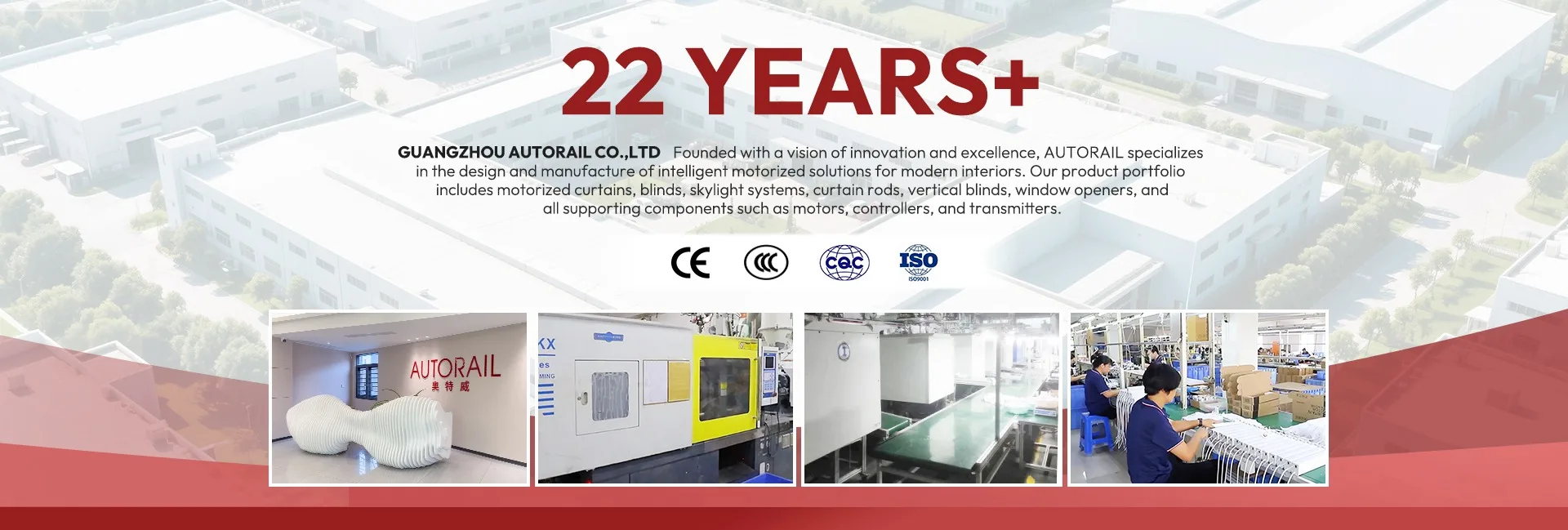 Guangzhou Autorail Co.,Ltd. is specialized in manufacturing parts of motorized curtain, motorized blinds, motorized skylight blinds, motorized curtain rod, motorized vertical blinds, motorized window opener, such as motors, controllers, remote and other parts.